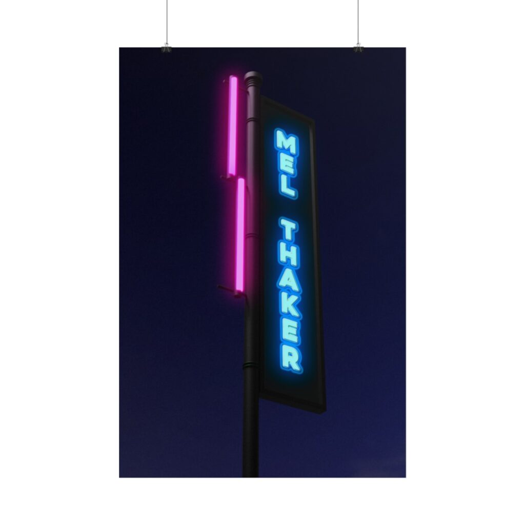 Select options This product has multiple variants. The options may be chosen on the product pageBestsellers, Posters & StickersMel Thaker™ Name in Neon Posters in Ultra High Definition 285 gsm Print: 36″ x 24″